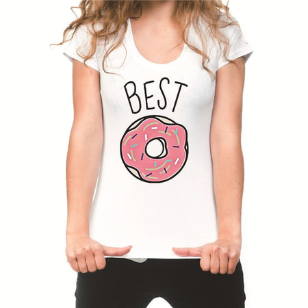 Showtly Fashion women Best friends t-shirt Cartoon Coffee Doughnut Letter print female T-shirt Friends Gift tshirt Hot sale Top
