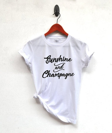 Sugarbaby New Arrival Sunshine and Champagne shirt quote T-shirt gift Woman tshirt Birthday gift shirt Graphic tee Clothing